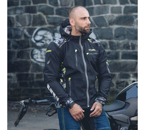 Куртка для мотоциклістів W-TEC Kybero Softshell - це легка мотоциклетна куртка з камуфляжним мотивом. Куртка, виготовлена з матеріалів софтшелл і MaxDura, вітронепроникна, приємна на дотик і проста в обслуговуванні. Водонепроникні блискавки роблять куртку водонепроникною (короткий дощ і мокрий). Підкладка виконана з дихаючої сітки. Сертифіковані протектори ліктя, плечей та спини забезпечують безпечну їзду. Проте протектори можна зняти, щоб зробити куртку стильним та зручним елементом верхнього одягу та / або одягу для відпочинку. Куртка має безліч практичних, ергономічно розміщених кишень, знімний регульований капюшон та регульовані манжети. Чоловічу мотоциклетну куртку Softshell W-TEC Kybero можна носити з весни до осені, що робить її ідеальним вибором для тих, хто хоче добре виглядати та почуватись комфортно на мотоциклі.