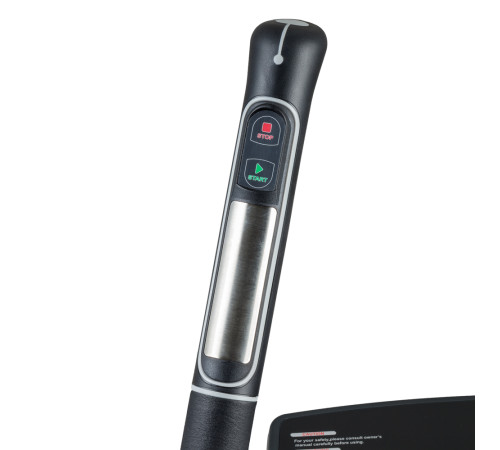 На задній панелі комп’ютера є вхід USB та динамік. Високий комфорт використання забезпечується: зручним регульованим сідлом, опорними ручками із вбудованими датчиками серцевого ритму та регулюванням, підставкою для планшета та тримачем для пляшок. Додатковими перевагами моделі є транспортні колеса, що полегшують рух обладнання, та система, що компенсує нерівні підлоги.