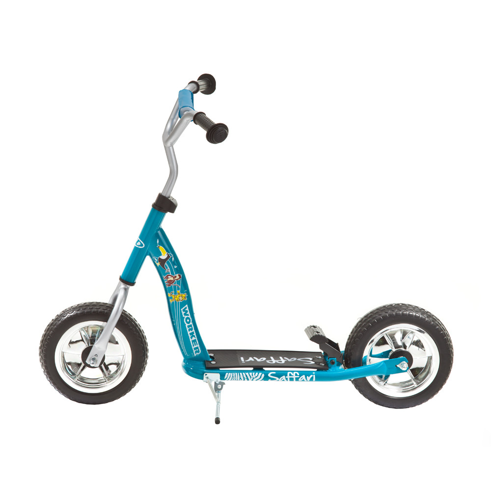 Самокат WORKER Saffari 100 - це сучасний дитячий скутер з 10-дюймовими колесами bantam. Модель відповідає найвищим стандартам безпеки. Відповідність європейським стандартам підтверджує сертифікат EN-71, виданий німецьким дослідницьким центром TÜV-GS. Легка рама гарантує чудові повороти та маневреність. Скутер призначений для їзди по рівних поверхнях, хоча завдяки непроколюваним бантовим колесам він також буде ідеально підходити для помірної місцевості.