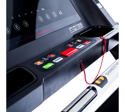 Під час тренувань на біговій доріжці inSPORTline Gardian G8 вся необхідна інформація відображається на великому чіткому 18,5-дюймовому екрані . Це дозволяє легко контролювати час, швидкість, нахил, відстань, пульс і спалені калорії. Швидкість і нахил стрічки легко регулюються за допомогою кнопок керування на дисплеї, що дозволяє швидко адаптувати налаштування до ваших потреб у тренуванні.