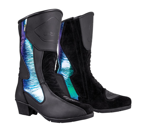 Завдяки комбінованій бічній застібці на блискавці YKK та ремінці на липучках, ці черевики ідеально оточують вашу стопу. Більше того, підсилення п'яти, кінчика, щиколотки та гомілки забезпечують високий рівень безпеки. Зроблений з м’якої та дихаючої сітки, зручний внутрішній вкладиш забезпечить ваші ноги добре провітрюваним в теплу погоду. Натяжні панелі забезпечують максимальну свободу рухів та легке натягування, тоді як м’яка підошва робить черевики настільки зручними, що ви можете носити їх, навіть коли ви не на мотоциклі, що дозволяє вам виглядати чудово весь час. Жінки Мотоцикл чоботи W-TEC Sceneria зробить Вас центром уваги.