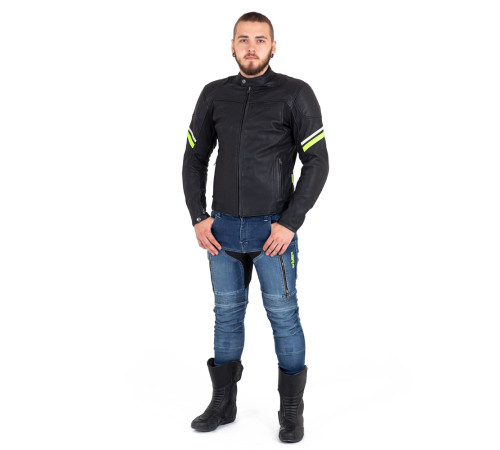 Шкіряна мото куртка W-TEC Montegi, виготовлена з м’якої шкіри козячої шкіри, має безліч корисних функцій. Окрім усіх захисників, які захищатимуть Вас, куртка також має ряд зовнішніх та внутрішніх кишень для Ваших документів та цінностей. Еластичні панелі на плечах і пахвах забезпечують максимальну свободу рухів, забезпечуючи додатковий комфорт. Більш того, панелі пахв частково пропускають повітря, дозволяючи свіжому повітрю надходити всередину куртки. Дихаюча сітка дозволяє повітрю циркулювати. Знімний тепловий вкладиш стане в нагоді в холодну погоду. Кольорові смуги на рукавах та рельєфні логотипи, спинка та груди роблять шкіряну мотоциклетну куртку W-TEC Montegi ще більш стильною.