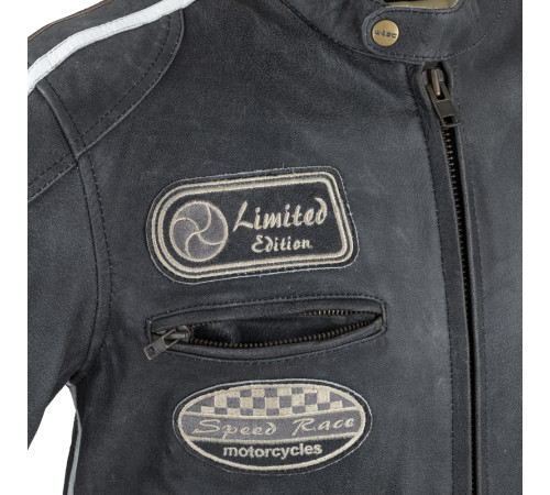 Ергономічний крій куртки гарантує комфорт у будь-якому положенні їзди. Крім того, завдяки регульованим ремінцям на талії та блискавці на кінцях рукавів, його можна правильно відрегулювати, завдяки чому куртка ідеально сидить. Він зроблений з красиво м’якої, еластичної шкіри буйволів з ніжною текстурою. Разом із внутрішньою підкладкою з м’якого поліестеру вона забезпечує приємні відчуття та високий рівень комфорту. Корпус куртки також може бути оснащений знімною внутрішньою підкладкою для кращої ізоляції. Практичність куртки доповнюється 4 передніми та 4 внутрішніми кишенями для документів, дрібних речей та інших необхідних речей.