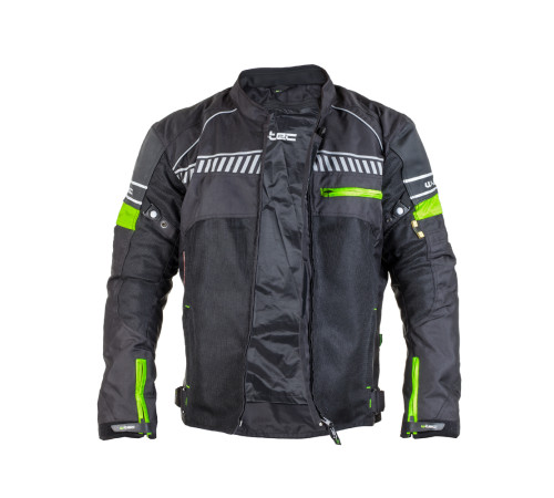 Чоловіча мотокуртка W-TEC Meltsch NF-2301 - чорна зі зеленими неоновими вставками.