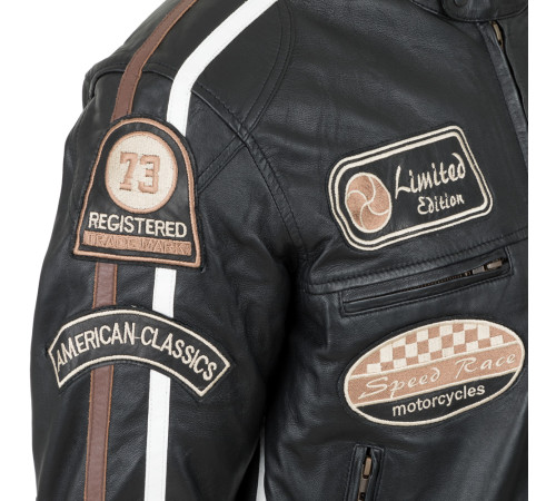 Стильний дизайн з «крутими» нашивками робить чоловічу шкіряну мотоциклетну куртку W-TEC Sheawen популярною курткою.