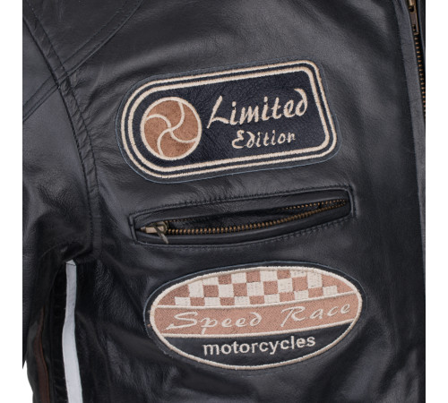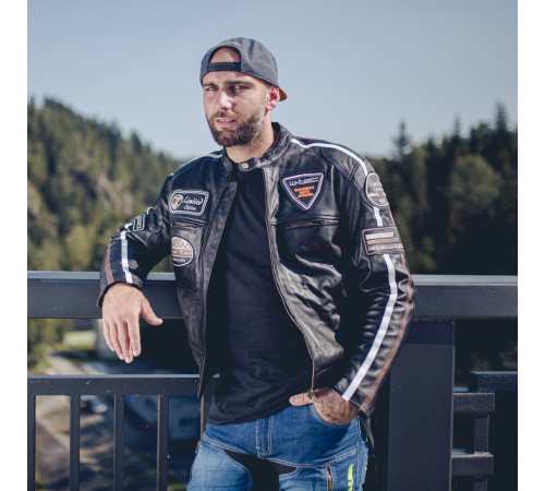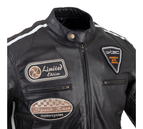 Стильний дизайн з «крутими» нашивками робить чоловічу шкіряну мотоциклетну куртку W-TEC Black Cracker популярною курткою.