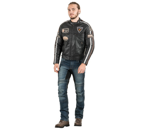 Стильний дизайн з «крутими» нашивками робить чоловічу шкіряну мотоциклетну куртку W-TEC Sheawen популярною курткою.