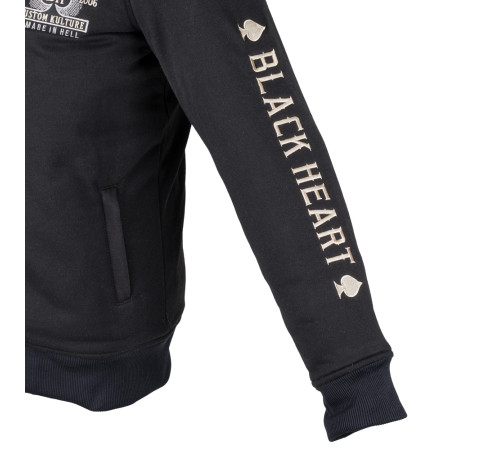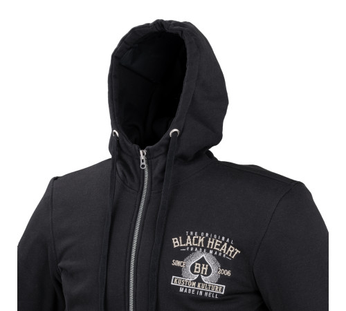 Посилений чоловічий толстовка W-TEC Black Heart Kustom Kulture з араміду з двома кишенями на блискавці та блискавкою на всю довжину, що тягнеться до підборіддя, ідеально підходить для їзди на мотоциклі. Також є капюшон з шнурком і петля для підвішування (а це дуже мало толстовок з капюшоном).