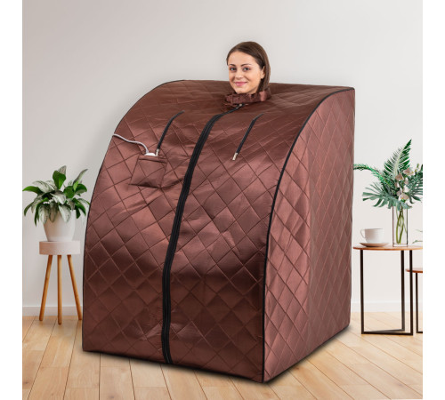 У сауні є розкладне крісло і подушка для ніг з підігрівом. На пульті дистанційного керування можна легко встановити температуру нагріву сауни, особливо температуру нагріву ніг. Завдяки двостороннім блискавкам ви зможете комфортно входити або виходити з сауни. Два практичних отвори для рук оцінять кожен, хто хоче провести час за читанням книги або переглядом фільму на планшеті в сауні. Компактний дизайн ідеально підходить для невеликих приміщень! Досить кількох швидких рухів і сауну можна сховати під ліжком або за шафою.