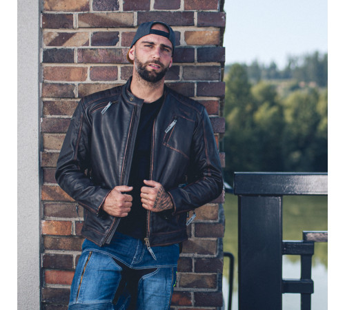 Шкіряна мото куртка W-TEC Embracer - темно-коричнева / XL