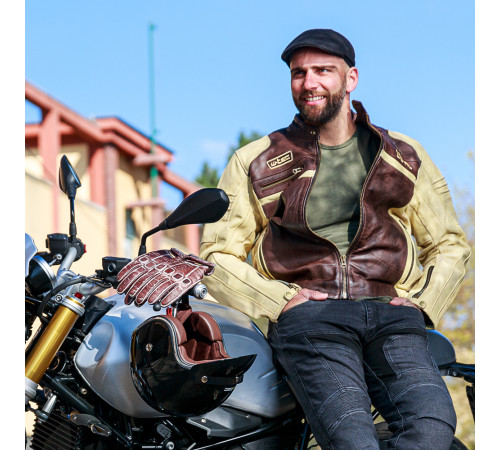 Чоловіча шкіряна мото куртка W-TEC Retro - коричнево-бежевий/L