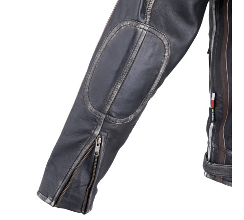 Шкіряна мотокуртка W-TEC Sheawen Vintage - це чудове поєднання стильного вигляду та комфорту. Окрім цього, внутрішні гумові протектори із сертифікацією CE плечей та ліктів, а також великий протектор на задній частині куртки захистять вас під час їзди. Однак усі захисні пристосування можна зняти, і тоді ви можете використовувати куртку W-TEC Sheawen Vintage як повсякденне вбрання.