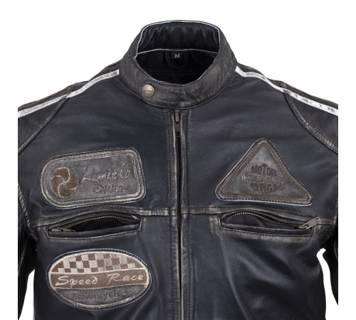Чоловіча шкіряна мотокуртка W-TEC Sheawen Vintage - чорна