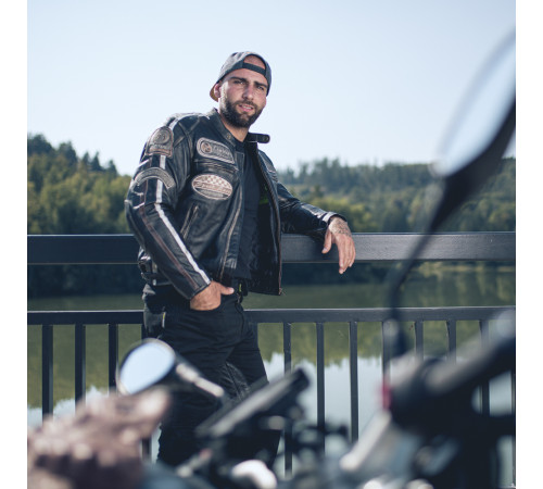 Чоловіча шкіряна мотокуртка W-TEC Sheawen Vintage - чорна