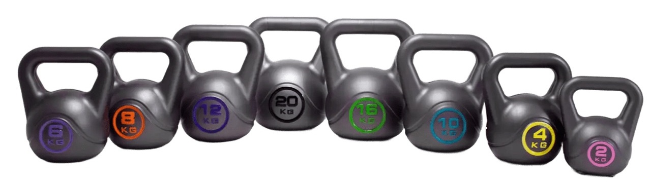 Набір вінілових WCG 78 кг. Набір з 8 гир вінілових призначений для занять удома та в тренувальних залах. Володіють рядом переваг перед чавунними гирями: точна вага, низька ціна, нема потреби обладнання страхувальної поверхні на підлозі. Пластикові гирі широко поширені в гирьовому фітнесі, використовуються на тренуваннях у гирьовому спорті і чудово підходять для занять вдома.