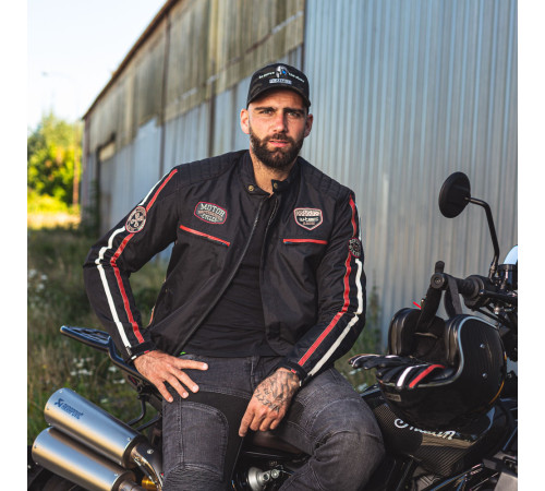 Чоловіча текстильна куртка W-TEC Jawo здивує вас своїм стриманим ретро-дизайном з першого погляду. Незважаючи на те, що технічно це класична байкерська куртка з поліестеру, вона чудово імітує зовнішній вигляд шкіряних курток своїм стилем, латами, стьобаними вставками та шкіряними ремінцями. У порівнянні зі шкіряною обробкою вона також має ряд переваг: вона легша, її можна мити, практично не потребує додаткового догляду, наприклад, воскової депіляції, а також набагато дешевше.