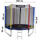Висота поверхні для стрибків над землею становить 50 см, що забезпечує оптимальні умови для гри. Висота захисної сітки — 160 см, а загальна висота батута разом з сіткою — 210 см. Це дозволяє зручно використовувати батут для дітей, забезпечуючи надійний захист від падінь. Середня поверхня для стрибків становить 211 см, що дозволяє дітям з комфортом виконувати різноманітні стрибки та акробатичні елементи.