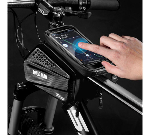 Водонепроникна велосипедна сумка WildMan — ідеальний аксесуар для кожного 2-колісного фаната. Сумка кріпиться на раму велосипеда, яка також є зручним місцем для зберігання та чохлом для нашого смартфона.
