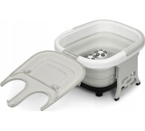 Інфрачервоне випромінювання і 6 масажних роликів - 6 масажних роликів чинять тиск на всі частини стопи (щиколотки, натоптиші, пальці, склепіння і п'яти) і знімають напругу в глибоких шарах м'язів, а інфрачервоне випромінювання стимулює кровообіг. Функція бульбашкового масажу знімає біль і втому, а також зменшує набряк. Масажер також оснащений відділенням для трав і солі для ванн.Регулювання температури і дистанційне керування - завдяки регулюванню температури води в діапазоні від 35 до 47 °C ви можете легко налаштувати масажер під свої потреби. Пульт дистанційного керування дозволяє керувати всіма функціями масажу Складана конструкція - завдяки складаній конструкції масажер можна легко зберігати та переносити Легко чистити - масажер надзвичайно легко підтримувати в чистоті. Вбудована зливна труба дозволяє легко спорожнити бак