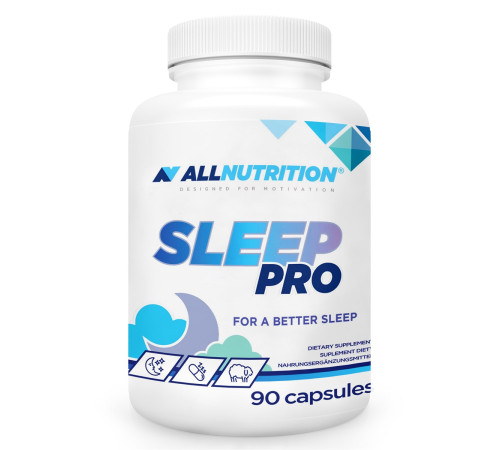 ALLNUTRITION SLEEP PRO - це харчова добавка, що містить ряд спеціально підібраних рослинних екстрактів, таких як екстракт вівса, меліси, хмелю та шафрану. Додатково продукт збагачений вітаміном В6, магнієм та цинком, а також L-теаніном, L-триптофаном, ГАМК та соєвим лецитином.
