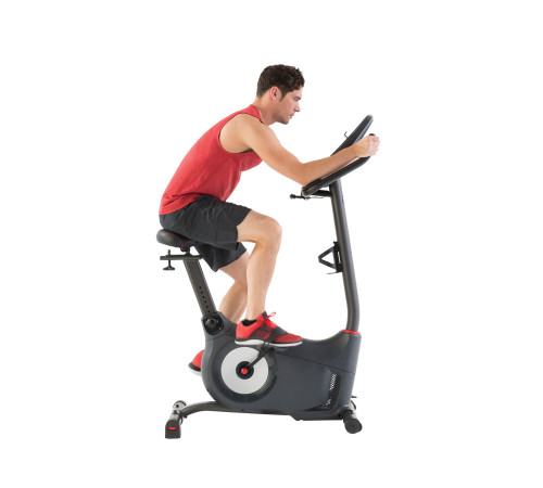 Schwinn 570U Programmed Bicycle - велосипед вищого класу американського бренду Schwinn, який є лідером фітнес-ринку в США. Що відрізняє модель від інших пристроїв цього типу, це, перш за все, велика кількість, аж 29, різноманітних навчальних програм. Завдяки цьому у вас ніколи не вичерпаються ідеї для тренувань. Велосипед має цілих 25 рівнів магнітного опору. Це означає, що незалежно від рівня ваших навичок, елегантний і стильний 570U – це саме те, що вам потрібно. Колонки з можливістю підключення mp3-плеєра або телефону дозволяють слухати улюблену музику під час бігу. USB-порт із можливістю заряджання пристроїв означає, що вам не доведеться турбуватися про розряджені аксесуари. Тримач для пляшки розміщено в такому місці, з якого можна зручно витягувати пляшку під час руху. Велосипед також укомплектований усіма необхідними аксесуарами та доповненнями, які зроблять тренування приємними та комфортними: піддон для аксесуарів, вентилятор з 3 рівнями регулювання потоку повітря, транспортувальні колеса для зручного переміщення обладнання, а також Bluetooth технологія, яка дозволяє, наприклад, підключити пристрій до бездротового телеметричного ременя для точного вимірювання пульсу під час тренування.