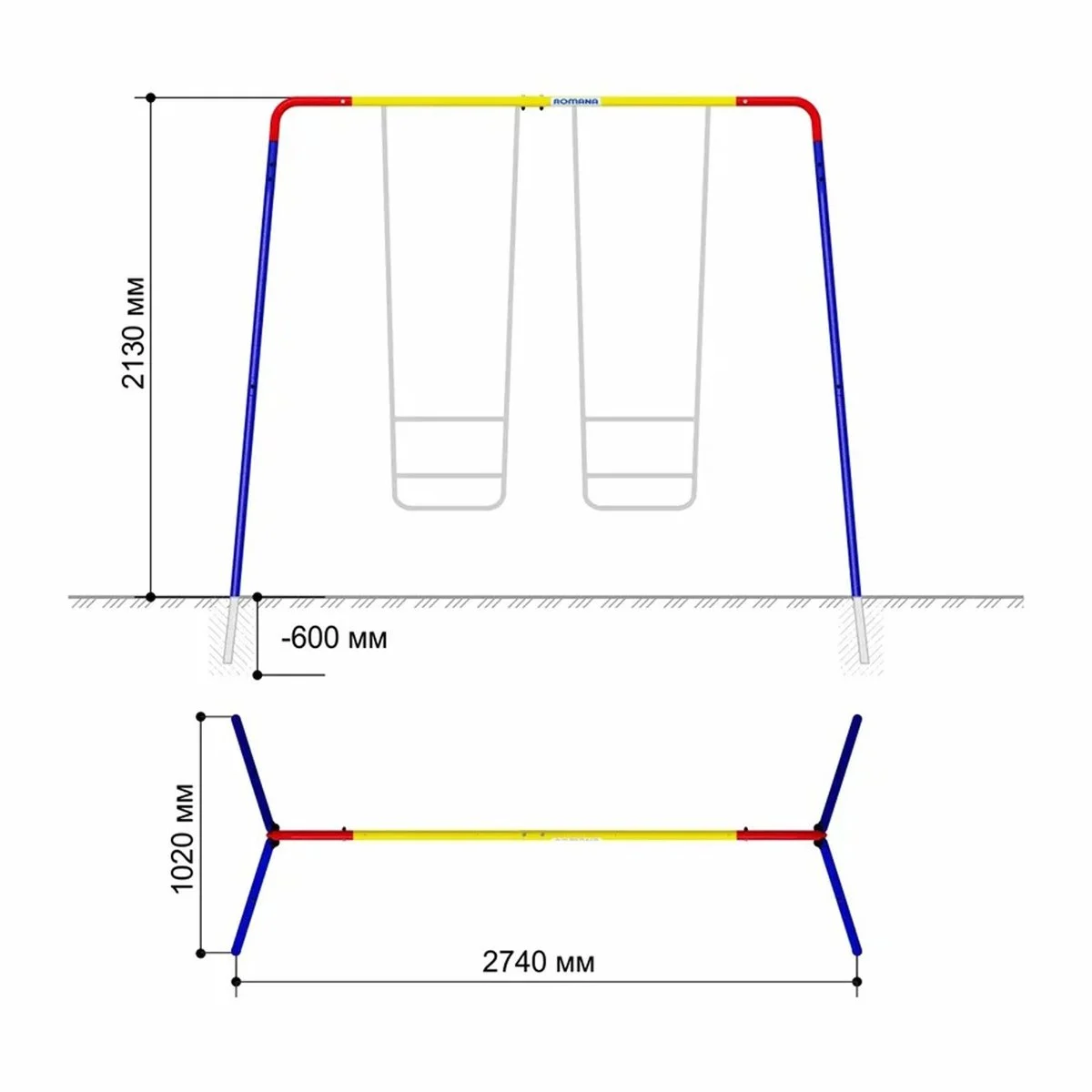 - Зона безпеки (з прикріпленими гойдалками): 4,7 х 8 м