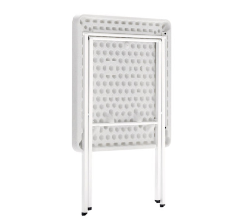 Зручне профільоване сидіння та спинка стільця виготовлені з міцного поліпропілену, перфорована стільниця з поліетилену високої щільності.