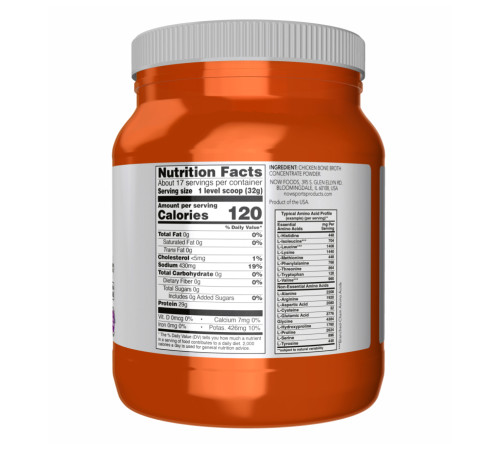 NOW® Sports Chicken Bone Broth Powder – це високоякісний екстракт курячої кістки, який містить 29 г білка на порцію. Порошок курячого кісткового бульйону є звичайною харчовою основою в багатьох культурах і природним білком, амінокислотами, колагеном тощо. Цей палеологічний білковий продукт виготовляється без штучних інгредієнтів і не містить багатьох поширених алергенів, що робить його ідеальним протеїном для людей із харчовою чутливістю. Порошок курячого кісткового бульйону NOW® Sports можна розмішати у воді, і це смачний і зручний спосіб забезпечити отримання білка, необхідного для активного способу життя.