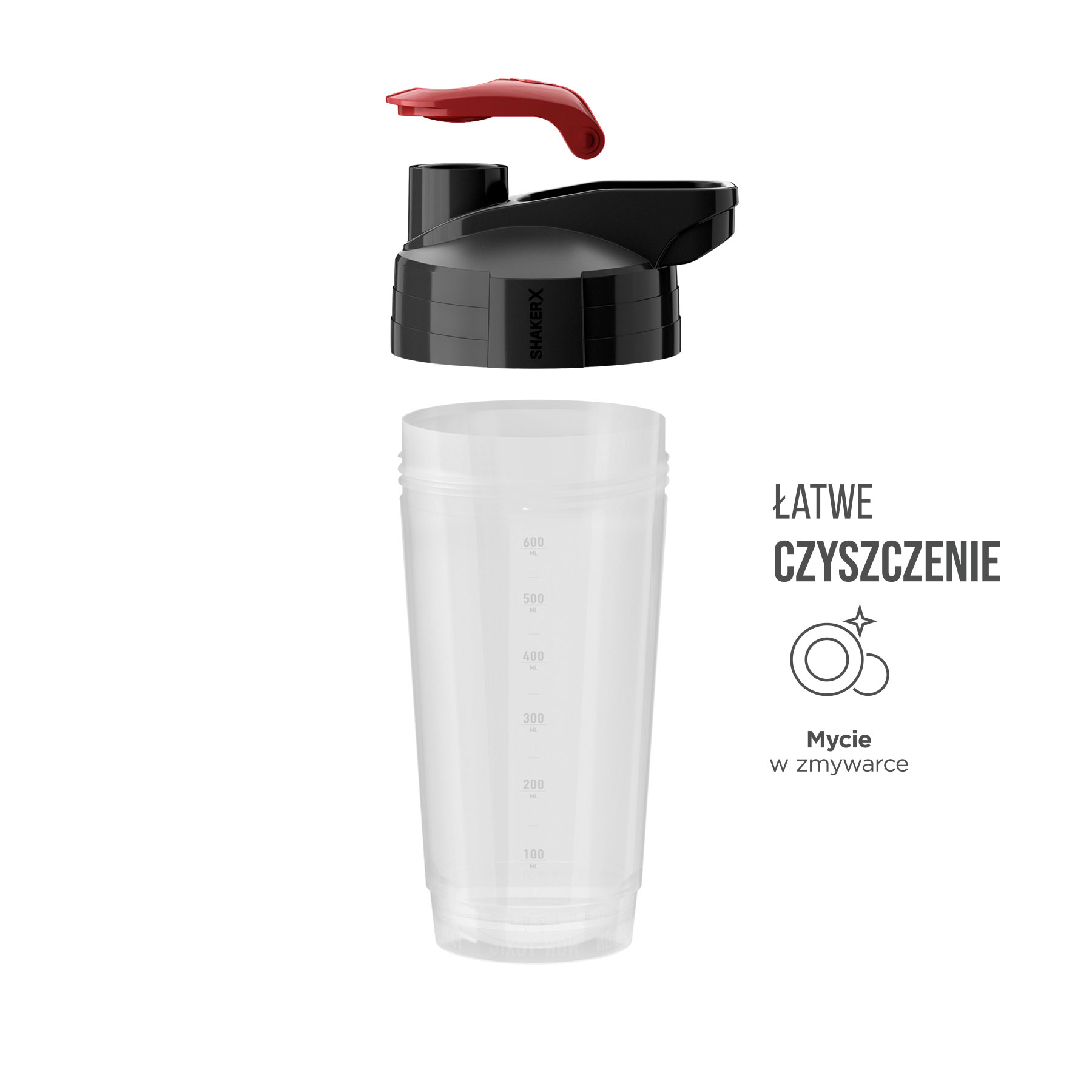 Для полегшення вимірювання кількості рідини шейкер оснащений мірною чашкою збоку
