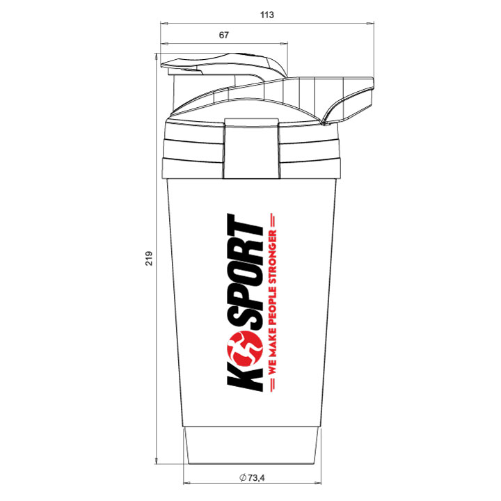Для полегшення вимірювання кількості рідини шейкер оснащений мірною чашкою збоку