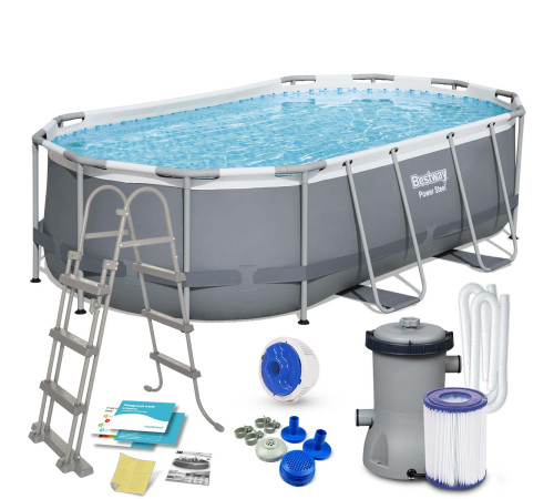 Басейн каркасний овальний Bestway 56620 Power Steel 427 x 250 см - графітовий. Басейн швидко і легко встановлюється.