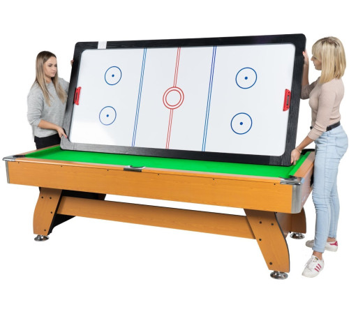 У комплекті ви отримаєте накладку, яка дозволить перетворити ваш більярдний стіл на поле для гри в настільний теніс та аерохокей.