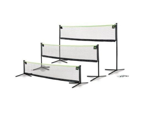 Хочете активно провести час в саду? Спортивна сітка регульована EXIT 155х300 см - мульти функціональна, настроюється на будь-які висоти, Спортивну сітку EXITToys Ви можете використати для гри у волейбол, бадмінтон або теніс. Сітка спортивна шириною 3 метри не займає багато місця і підійде для використання на різних територіях. Її легко регулювати по висоті, а салатовий верхній край сітки робить її достатнє помітною під час гри. Каркас виробу має міцну конструкцію, Кожна стойка має три ноги, що робить її досить стійкою під час гри. Ви можете виставити її на три висоти: Низьку /- 62 см середню /- 109 см Високу /- 155 см Спортивну сітку можна легко зняти із стойок і перенести її в інше місце. Система подвійного затягування гарантує, що мережа завжди натягнута туго. Ця спортивна сітка підходить як для ігор в приміщенні, так і на відкритому повітрі. А з сумкою для перенесення її можна узяти з собою куди завгодно. Характеристики: Розмір: 155 х 300 см Комплектація: сітка, стойки, набір анкерів, сумка, інструкція Розміри в упаковці (Д х Ш х В) 106 х 21 х 13 см Вага - 12 кг Колір - чорний Матеріал виготовлення : оцинкована сталь з порошковим покриттям Гарантія на раму - 12 місяців