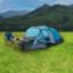 Туристичний намет Nils Camp NC3027 Voyager - найкраще рішення для любителів походів вихідного дня на озеро і тривалого відпочинку в кемпінгу. «Вояджер» — це двокорпусний намет з однією просторою спальнею на чотири людини та великим тамбуром із підлогою, де можна провести дощові вечори чи зберігати туристичне спорядження. У наметі можуть розміститися до чотирьох осіб, що робить його надзвичайно просторим і комфортним. Висока якість виготовлення: Водонепроникний Високий комфорт відпочинку в складних погодних умовах забезпечується водонепроникним захисним покриттям і підлогою з параметрами 3000 мм H2O. УФ-випромінювання. Матеріал стійкий до УФ-випромінювання, зберігає колір і міцність матеріалу. Вогнестійкість Після видалення джерела вогню тканина більше не горітиме. Повітропроникність Voyager має два великих входу в передбанник, а спальня виконана з дихаючого матеріалу, який запобігає утворенню конденсату під час сну. У спальні також є москітна сітка та вентиляційний отвір ззаду. Всі ці рішення забезпечують високий рівень повітропроникності та циркуляції повітря, що гарантує тривалий і комфортний сон. Проклеєні шви Проклеєні шви є додатковою перевагою, яка захищає намет від вологи та намокання. Проста збірка і зручне транспортування: інтуїтивно зрозуміла збірка Конструкція намету складається з трьох каркасів зі скловолокна, які вбудовані в тропіки. Тунелі та рами позначені однаковим кольором, тому ви можете легко підібрати відповідну раму до тунелю. Завдяки спеціальним ручкам всередині полотна встановлюється самостійна спальня. Весь намет, включаючи смуги, що прикріплюють лист, кріпляться на шпильках. Transport Voyager має транспортну сумку, в яку ми легко помістимо намет під час подорожі. Комфорт використання: Місткість Намет «Вояджер», крім просторої спальні, також має великий тамбур з підлогою розміром 230 см в довжину х 260 см в ширину х 150 см у висоту, завдяки чому, перебуваючи всередині намету, ви можете вільно проводити час. вечорами чи дощовими днями та зберігайте туристичні меблі чи туристичне спорядження на ніч. Додатковою перевагою є два головних входи збоку та з фасаду вестибюлю. У бічного входу (завдяки спеціальним каркасам) можна встановити дах і при цьому розширити частину тамбура. Вестибюль також має постійні вікна, тому ми можемо почуватися ближче до природи, перебуваючи в наметі. Зберігання Крім того, намет оснащений двома внутрішніми кишенями для зберігання підручних речей і ручкою під стелею, завдяки якій можна повісити лампу.