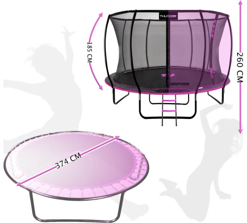 Батут THUNDER INSIDE ULTRA з внутрішньою сіткою 12 футів 374 см чорно-рожевий