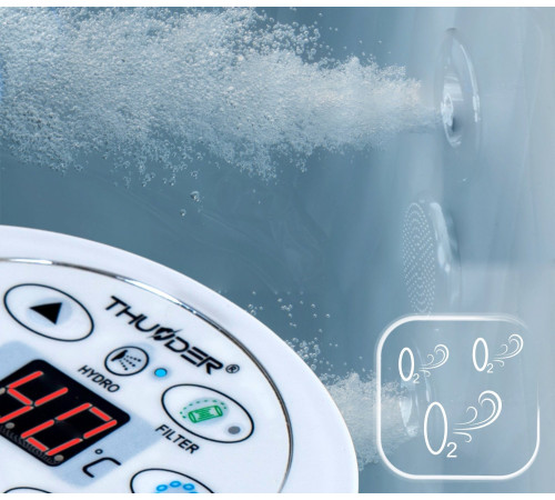 Завдяки використанню аж 130 повітряних струменів наш THUNDER®️ BLEND SPA наповнений тисячами нагрітих бульбашок, які ніжно масажують ваше тіло та забезпечують приємне розслаблення м’язів.