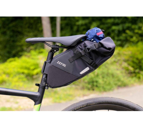 Wodoodporna torba podsiodłowa Z Adventure R5 to torba pod siodło zaprojektowana do przewożenia dużej ilości przedmiotów bez potrzeby montowania tylnego bagażnika. Wyposażona w kilka trwałych pasków i materiał zapobiegający rozdarciu u podstawy. Mocowana do szyn siodełka i sztycy dla optymalnego rozłożenia ciężaru na rowerze. 5L objętości jest idealne na całodniowe wycieczki lub na trening w zmiennych warunkach atmosferycznych. Z Adventure R5 to świetna alternatywa dla tych, którzy nie chcą jeździć z plecakiem. WODOODPORNA - Materiał wodoodporny zamek błyskawiczny. Pokrowiec przeciwdeszczowy. DUŻA POJEMNOŚĆ - 5L - Idealny na wycieczki. TRWAŁOŚĆ - wzmocniony materiał aby uniknąć otarcia i ryzyka rozdarcia. UNIWERSALNY - Regulowane i trwałe samozaciskowe paski. PASKI ZEWNĘTRZNE - do szybkiego mocowania i przechowywania dodatkowych przedmiotów. SPECYFIKACA: MATERIAŁ Poliester 420D TPU (+ Poliester 640D + Hypalon) MONTAŻU uniwersalne, samozaciskowe paski ROZMIAR 370 x 70 ->, 175 x 130 mm POJEMNOŚĆ 5 L WAGA 400 g