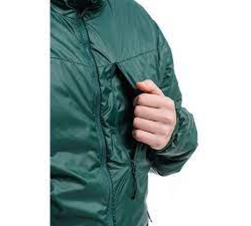 - Компактно пакується. Коли куртку треба помістити в рюкзак, вона легко складається у власну кишеню і не займає багато місця