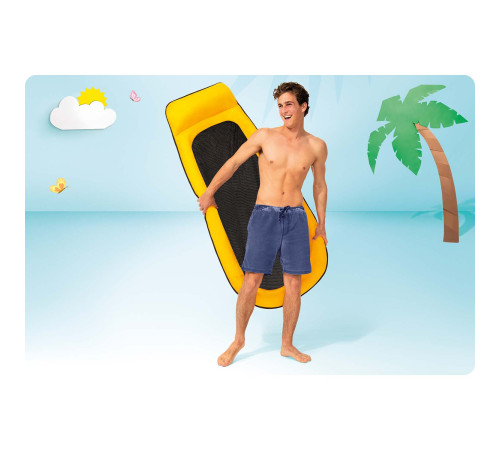 Пляжний надувний матрац з підголів'ям і сіткою виконаний у вигляді гамака і виготовлений з високоякісного вінілу, товщина матеріалу - 0,25 мм.