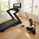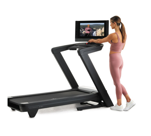 ОБЕРТОВИЙ ДИСПЛЕЙ: 22" кольоровий, сенсорний. Екран повністю регулюється. Ви можете легко встановити його під будь-яким кутом. Таким чином, незалежно від вашого зросту, ви можете легко читати поточну бігову статистику. Ви також можете повертати екран, щоб повною мірою скористатися перевагами тренувань поза біговою доріжкою, які пропонує членство у програмі iFit. Пілатес, йога або інтервальні тренування - тепер ви будете займатися ними, слідуючи вказівкам тренера iFit.