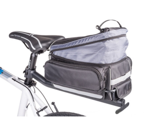 Багажна сумка з вбудованою полицею для багажу. Стійка кріпиться на сідлову стійку за допомогою струбцини з ексцентриком. Виготовлений з алюмінієвого сплаву 6061-T6.