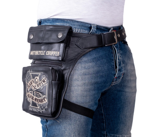 Мотоциклетна сумка W-TEC Man's Ruin — це практична зовнішня сумка з коров'ячої шкіри, яку можна легко прикріпити до стегна. Його унікальну графіку розробили W-TEC і прогресивна чеська студія дизайну Black Heart . Нашивки у байкерському стилі дозволять вам виглядати добре на мотоциклі! Шкіряний ремінь сумки, який також виготовлено з коров’ячої шкіри, має люверси та металеві пряжки. Ви також можете оцінити текстильний ремінь на стегні. Ця сумка забезпечує швидкий доступ до вашого посвідчення особи, телефону, гаманця, інструментів тощо.