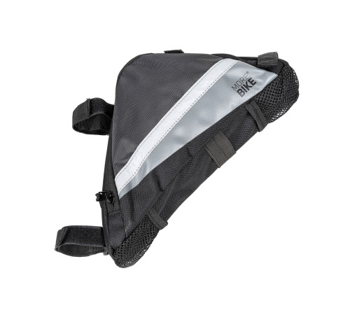 Велосипедна трикутна сумка кріпиться до рами. Виготовлений зі стійкого до стирання поліестеру. Має додаткове кріплення для насоса і систему з чотирьох ременів, що дозволяє кріпити її будь-де. Беріть із собою все необхідне та вирушайте в дорогу!