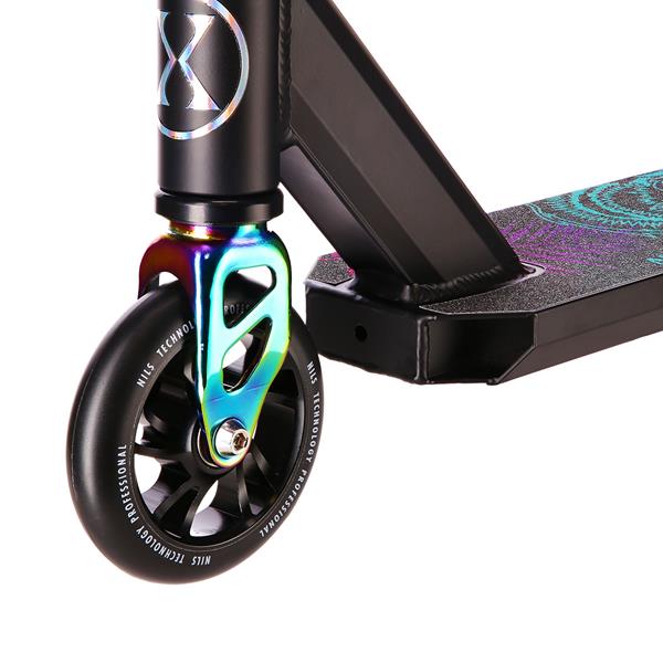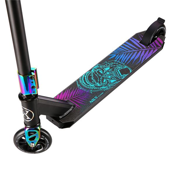 Самокат Nils Extreme HS002 NEO — трюковий самокат типу stunt, призначений для підлітків та дорослих. Модель чудово підходить для катання по асфальту, у скейтпарках та на міських доріжках. Колеса діаметром 110 мм із твердістю 85A та підшипники ABEC9 забезпечують плавний рух і високу швидкість при мінімальних зусиллях. Заднє ножне гальмо типу flex fender гарантує безпеку та дозволяє швидко зупинити самокат.