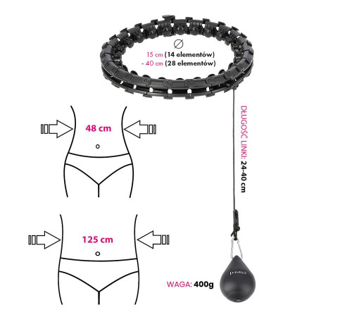 HHW12 HMS Plus Size - це регульований хулахуп з вібропоглинаючими шпильками та гравітаційний м'яч для фітнесу. Це дозволяє одночасно проводити тренування та масаж талії на 360 градусів. Він ідеальний, серед іншого: зміцнити і зміцнити м'язовий корсет. Завдяки регульованому окружності HHW12 ніколи не впаде під час занять, тому ваші домашні кардіотренування можуть бути тривалими та приємними, а це гарантія ще більш швидкого та кращого результату! Пристрій призначений як для дітей, так і для дорослих.