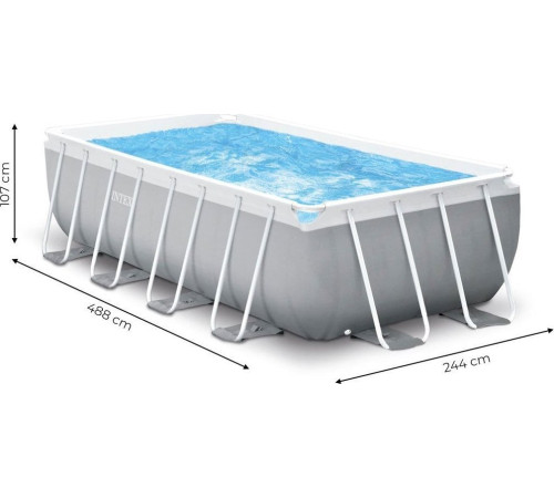 Басейн каркасний прямокутний 6в1 INTEX 26792GN, 488 x 244 x 107 см, сірий