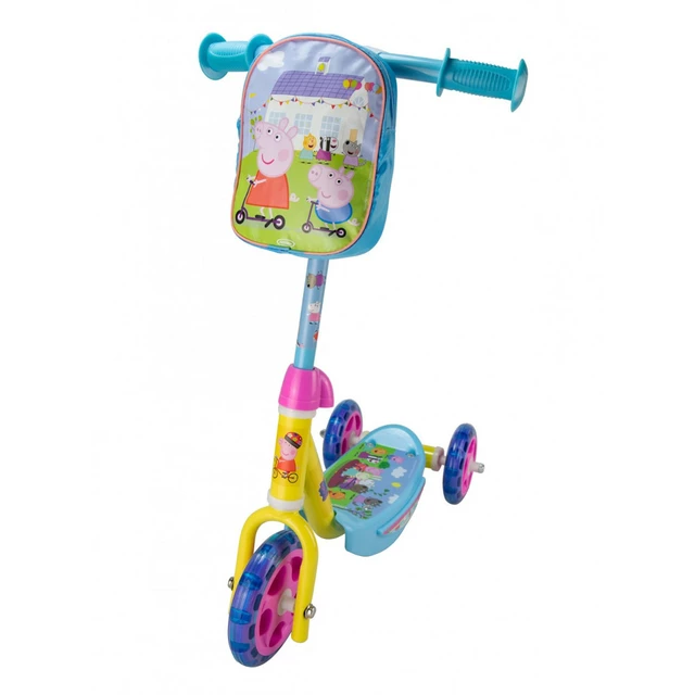 Дитячий триколісний самокат D'Arpèje Свинка Пеппа з сумкою — чарівний самокат, який ідеально підходить для маленьких. Завдяки широкій неслизькій деці та двом заднім колесам ваша дитина не втратить рівноваги та зможе насолоджуватися поїздкою! Також є невелика сумка на кермі, куди можна покласти перекус або улюблену іграшку.