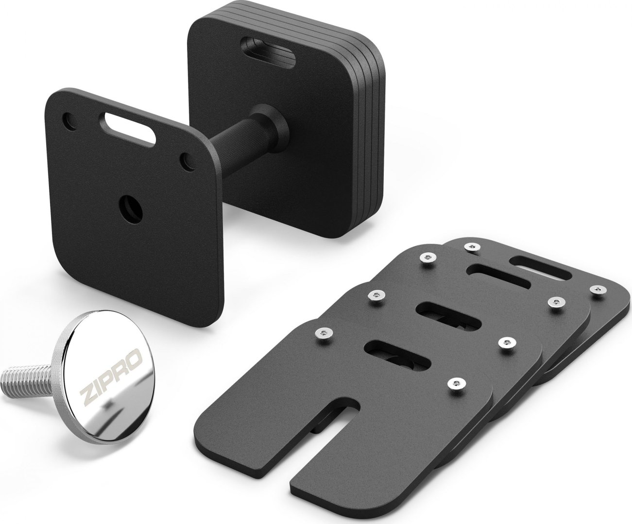 Вибір інноваційної системи кріплення вантажів був зроблений після серії складних випробувань, які підтвердили її придатність. У випадку з гантелями ZIPRO немає щілини між окремими пластинами, немає тряски, шліфування та страху випасти. Після затягування вони залишаються на місці навіть під час найінтенсивніших вправ.