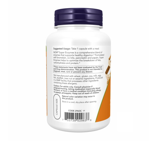 NOW® Super Enzymes — це комплексна суміш ферментів, яка підтримує здорове травлення.* Розроблені з бромелайном, бичачою жовчю, панкреатином і папаїном, Super Enzymes допомагають оптимізувати розщеплення жирів, вуглеводів і білків.*