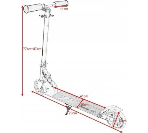 Можливості регулювання - висота керма регулюється на 3 рівнях (від 77 до 87 см), тому ви можете легко налаштувати самокат під потреби вашої дитини